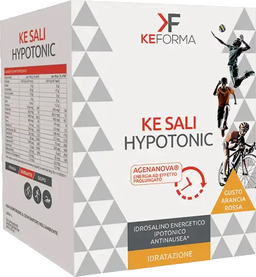 KE SALI HYPOTONIC 10 buste è un integratore alimentare con zucchero ed edulcorante a base di carboidrati semplici e complessi in polvere per la preparazione di una bevanda ipotonica, con *zenzero ad azione antinausea, sali minerali e vitamine.