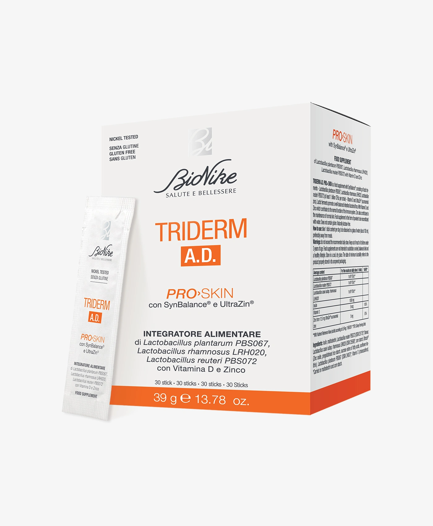 Contiene SynBalance®, complesso sinergico di fermenti lattici – Lactobacillus plantarum PBS067, Lactobacillus rhamnosus LRH020, Lactobacillus reuteri PBS072 (non meno di 1 miliardo UFC per ceppo) – oltre a Vitamina D e Ultrazin® (Zinco Sucrosomiale®). I fermenti lattici favoriscono l’equilibrio della flora batterica intestinale. La Vitamina D e lo Zinco che contribuiscono alla normale funzione del sistema immunitario. Lo Zinco inoltre contribuisce al mantenimento di una pelle normale. Integratore in polvere da ricostituire. Non contiene glutine. Naturalmente privo di lattosio.