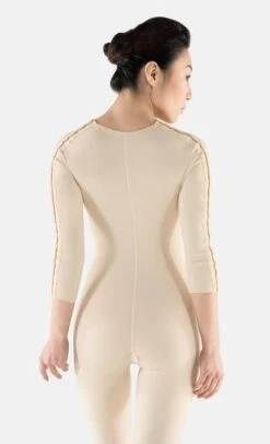 Body addominale vita alta elasto compressivo con zip laterale. Disponibile in due colorazioni, beige o nero dalla taglia 2XS alla 4XL. Garantisce un’efficiente azione di compressione omogenea e costante, ideale nel primo periodo post intervento, grazie anche a zip e ganci progettati e studiati per essere facilmente indossati direttamente sul tavolo operatorio ed in generale durante la vita quotidiana della prima fase di recupero, nello specifico consigliato l’utilizzo da subito fino a 3 settimane dopo l’intervento. Particolarmente indicato a seguito di un intervento addominale come liposuzione, addominoplastica, sostegno post partum o in caso di rilassamento dei tessuti addominali, contiene la formazione di ematomi e gonfiori, accelera il graduale assestamento dei tessuti epidermici favorendo una corretta cicatrizzazione sottocutanea. Realizzato in tessuto F7 “ComfortWeave”, una nuova tecnologia rivolta al miglioramento dei 7 fattori chiave, importanti nel trattamento post operatorio. Un tessuto resistente, elastico, morbido, traspirante con proprietà antimicrobiche;composto dal 49% di filato elastico (Soft Lycra Spandex) ed dal 51% di filato rigido non elastico (Tactel Nylon). Aderisce “come una seconda pelle” garantendo un maggior senso di comodità e adattabilità, elementi preponderanti per indumenti compressivi che devono essere indossati 24 ore al giorno, 7 giorni a settimana per l’intera durata del periodo di recupero.