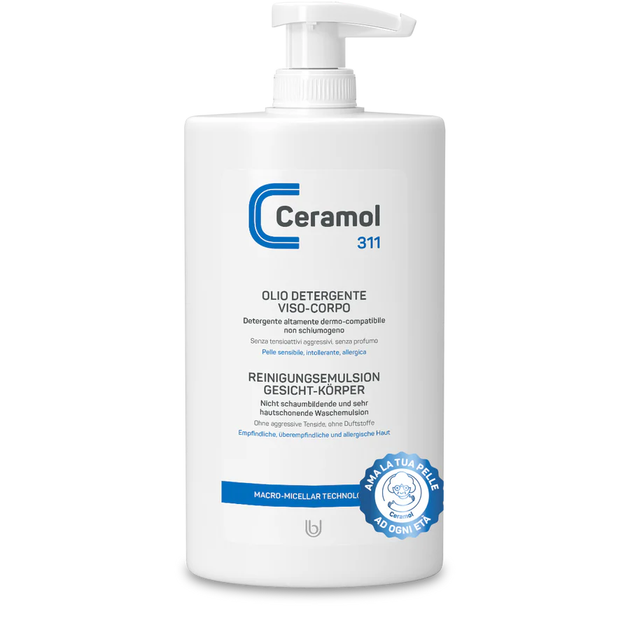 Emulsione da bagno contenente attivi purificanti e antimicrobici fisiologici, caratterizzata da tecnologia macromicellare, rimuove le impurità per affinità e non per contrasto.