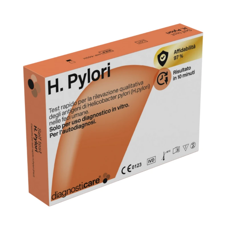 Test rapido per la rilevazione qualitativa degli antigeni di H. Pylori nelle feci umane.
