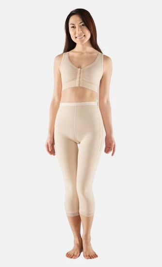 – Guaina compressiva vita bassa lunghezza sotto ginocchio con zip laterali – Tessuto antimicrobico traspirante – Indicata post interventi di lipoaspirazione, liposuzione fianchi, cosce, glutei e polpacci – Taglie dalla 2XS alla 4XL – Disponibile nei colori beige e nero