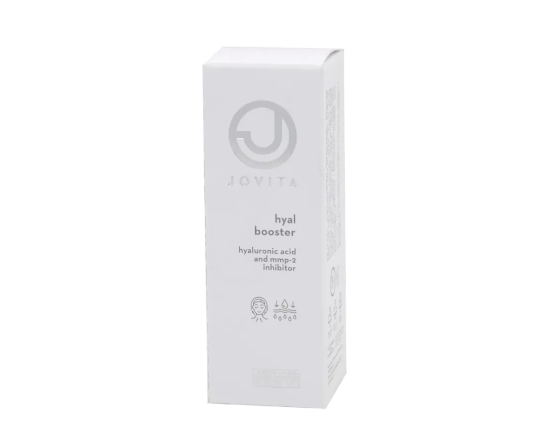 Jovita Hyal Booster Acido Ialuronico, è un trattamento concentrato di acido ialuronico ad alto e basso peso molecolare, associato ad inibitore enzimatico. Grazie ai due pesi molecolari l’acido ialuronico è in grado di agire sui diversi strati cutanei assicurando idratazione, compattezza, tonicità e luminosità alla pelle. L’inibitore enzimatico protegge le fibre di collagene contrastando efficacemente l’insorgenza dei segni dell’ invecchiamento, Formula leggera a rapido assorbimento dona una immediata sensazione di elasticità alla pelle attenuando rapidamente eventuali rossori presenti. Indicato per tutti i tipi di pelle.