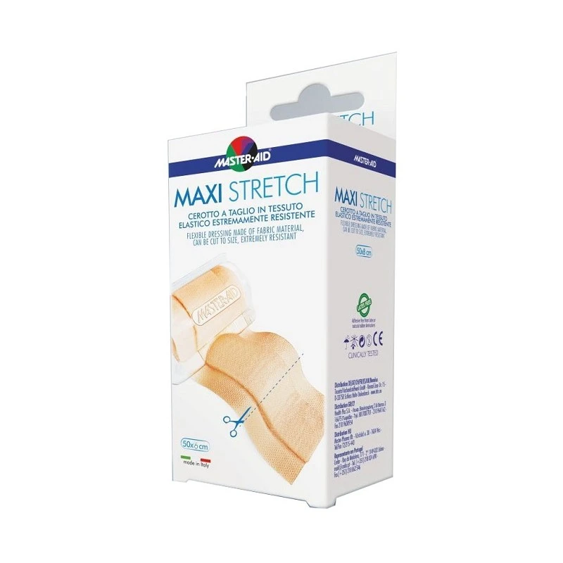 Maxi Stretch è contenuto in una valva protettiva in materiale plastico, per conservarlo igienicamente protetto.