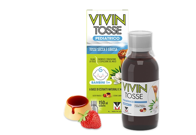VIVIN TOSSE PEDIATRICO, all’aroma di fragola e crème caramel, è utilizzabile a partire dal 1° anno di età.