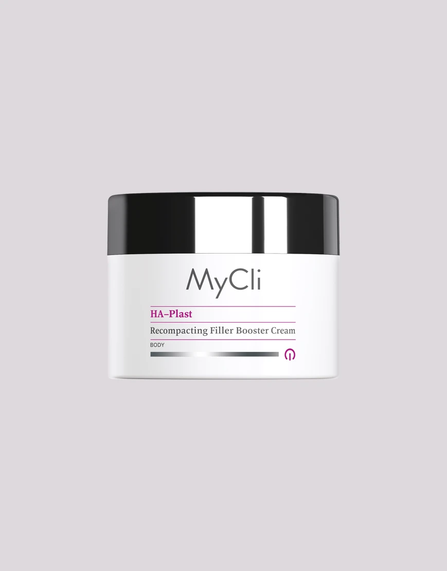 MyCli HA–Plast Crema Filler Booster Ricompattante è un’emulsione compatta specifica per il corpo ad effetto ultra correttivo. La sua formula rilancia la produzione di acido ialuronico endogeno, dando sostegno e plasticità alla cute e favorendo il riempimento dei segni superficiali. Inoltre, potenzia l’attività dei cheratinociti e aumenta l’idratazione epidermica per una pelle compatta, morbida e setosa al tatto. Tecnologia micromolecolare integrata a base di: NAG, glicogeno e silanolo specializzato.